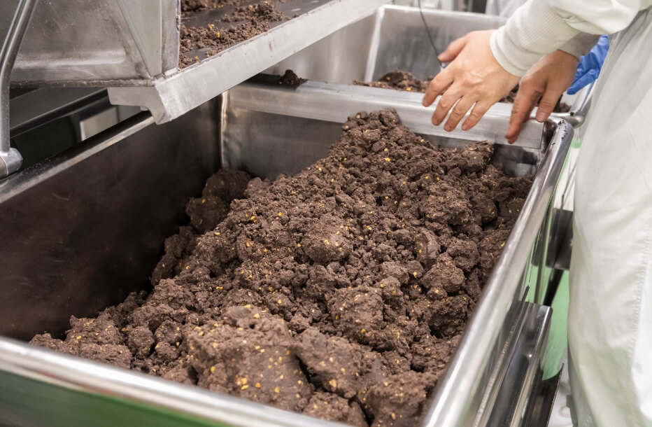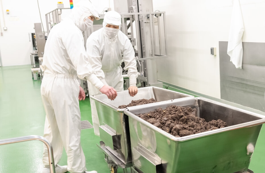 計量された原料をミキサーで混ぜ合わせ、ビスケットの生地に練り上げます。それぞれの生地は、ひとつひとつのビスケットの形に成型されます。ビスケットの種類に合わせて成型の方法が違います。